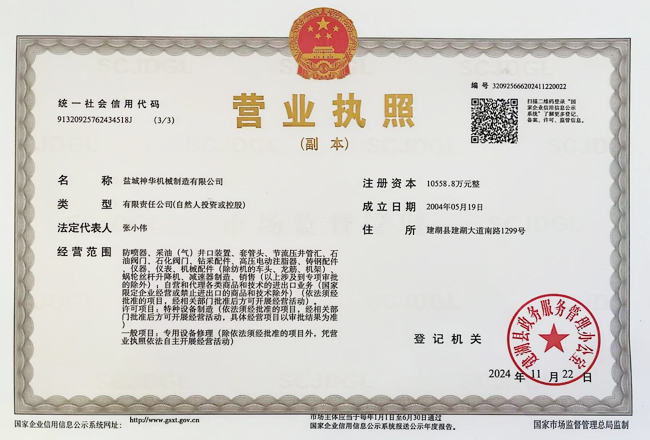 鹽城神華機械制造有限公司為中國石油、石化、海洋物資裝備(集團(tuán))總公司的網(wǎng)絡(luò)成員單位,公司注冊資金10558.8萬元整,公司通過了ISO9001國際質(zhì)量體系認(rèn)證,取得了中國船級社船舶產(chǎn)品和配件使用證書。
